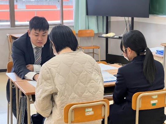 1年生は来年度のクラス編成に関わる文理選択について、2,3年生は主に進路について、保護者の方も一緒にお話をします。