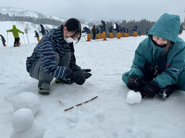 先生と雪だるまづくりをしていました!